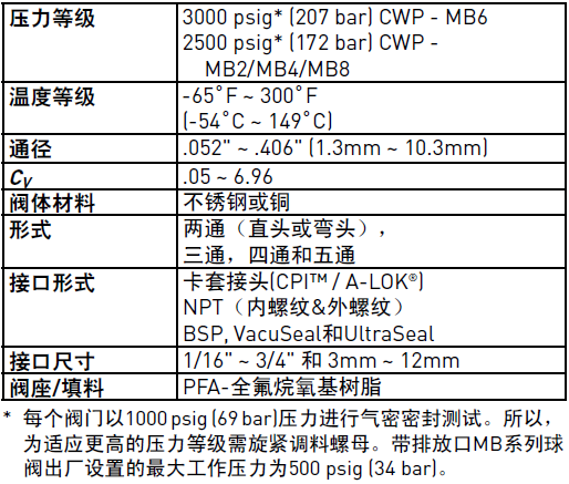 PARKER球閥MB產(chǎn)品參數(shù):